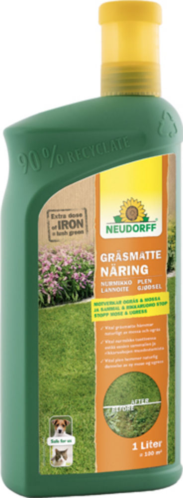 | Övrig produktinformation: | Organisk långtidsverkande gräsmattenäring för en tät och strak grön gräsmatta utan mossa och ogräs. Koncentrat för enkel applicering med vattenkanna. Räcker till 100 kvm. Skonsam mot människor och djur. |
